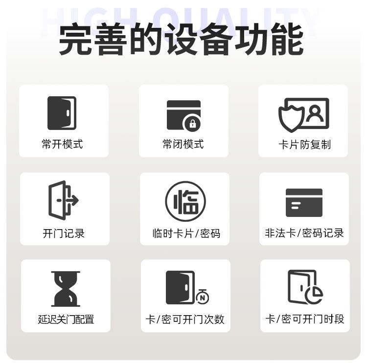 阿坝这款智能门锁提供室内门锁和防盗门锁两种选择,其中室内门锁尺寸为 2806521mm,适配 5050 锁体;防盗门锁尺寸为 3657021mm,适配 6068 锁体,可满足不同场景的安装需求。它采用铝合金一体成型搭配钢化玻璃面板打造,兼具坚固耐用的品质与简洁美观的视觉效果。门锁支持蓝牙无线通讯,解锁方式丰富多样,密码、卡片、蓝牙、钥匙四种方式随心选择,满足不同使用习惯与应急需求。其工作温度范围为 - 20~70℃,能适应多数地区的气候条件,采用碱性电池供电,安装更换便捷,是兼具安全性与实用性的门锁选择。